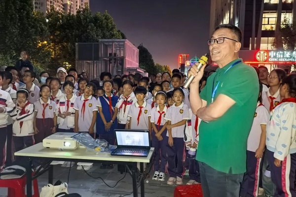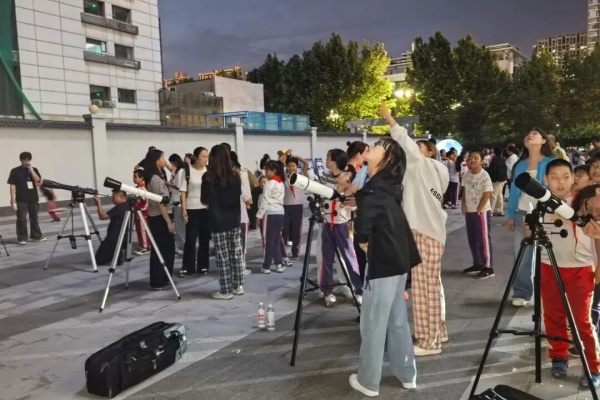9月28日,在石家庄市科协指导下,由石家庄市青少年宫、市天文爱好者协会联合桥西区东风街道槐北路社区党委、裕华西路小学、四中路小学、装备制造学校共同在青少年宫广场举办“穿越星河之旅,解码宇宙万象”千人赏月活动,吸引了市民、天文爱好者及亲子家庭近千人参与。