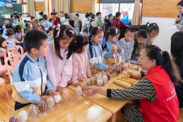 活动中,河北省农产品质量安全科普基地、农产品质量安全与营养健康科普教育基地负责人马春红研究员介绍了科普基地及小麦、玉米等农作物知识,让小朋友认识到粮食安全的重要性。在《神奇的种子》主题讲座中,许大金博士通过动态课件展示了种子从萌发到成熟的全过程。种子萌发需要适宜的温度、水分和氧气条件,这一过程体现了生命的顽强与智慧。当看到种子如何突破种皮、长出根叶时,孩子们发出了阵阵惊叹。在《玉米简史——从杂草到主粮》科普讲座,赵璞博士介绍了一株杂草的逆袭:约9000年前,墨西哥南部河谷的野生大刍草还是无人问津的杂草,籽粒仅指甲盖大小。中美洲先民偶然发现其基因突变导致的颗粒增多特性,开始人工选育。经过数千年驯化,玉米穗变长、籽粒变甜,成为玛雅和阿兹特克文明的基石。16世纪哥伦布将玉米带回欧洲,随后传遍全球。其适应性强、产量高的特点使其在工业时代跃升为饲料、能源和主粮三元一体的作物。如今全球年产量超12亿吨,养活了超过1/3人口,完成了从荒野杂草到人类餐桌食物的逆袭。